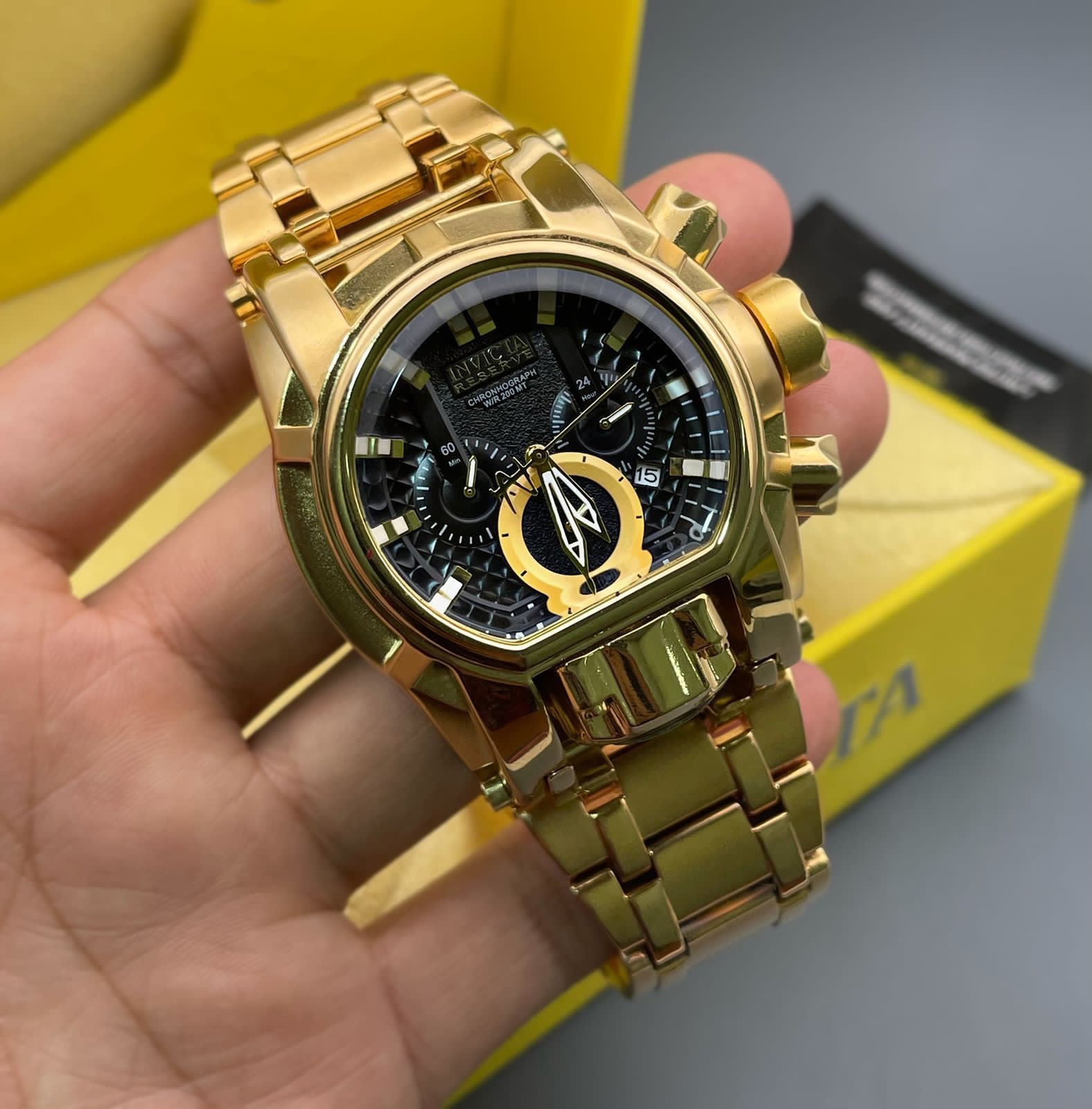 *🔥🔥INVICTA RESERVE BOLT ZEUS MAGNUM MENS QUARTZ 52MM GOLDEN PLATING BLACK DIAL*🔥🔥