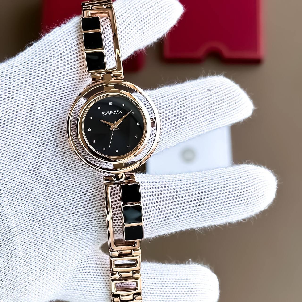 – crystal & rose gold and black